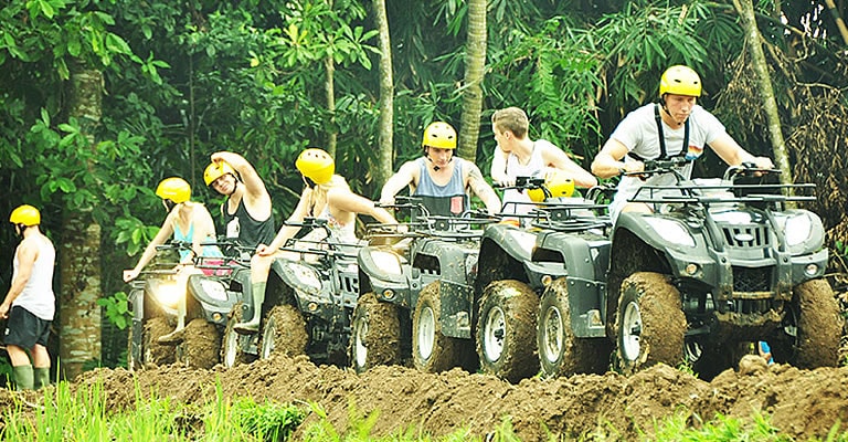 Aktivitas Pertualangan Naik ATV di Bali dengan Motor Roda Empat untuk mencoba adrenalin kamu megendarai Sepeda Motor beroda empat dekat Ubud. Perjalanan kurang lebih 2,5 jam menaiki Sepeda Motor ATV menyusuri kebun, persawahan dan ladang di daerah yang dekat dengan kota budaya Ubud.
